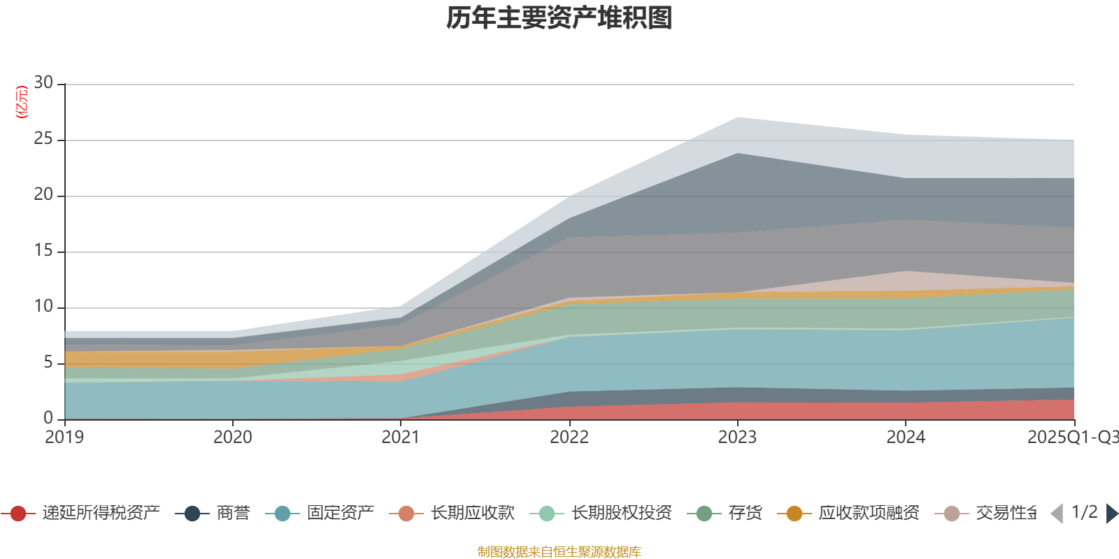 资产重大变化方面,截至2025年三季度末,公司交易性金融资产合计较上年末减少82.99%,占公司总资产比重下降5.75个百分点;固定资产较上年末增加15.47%,占公司总资产比重上升3.75个百分点;货币资金较上年末增加19.61%,占公司总资产比重上升3.19个百分点;在建工程合计较上年末减少69.22%,占公司总资产比重下降2.68个百分点。