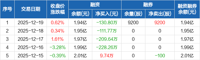 泰嘉股份:连续4日融资净偿还累计680.48万元(12-19)