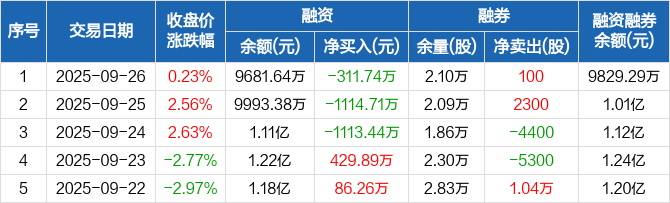 盐津铺子:连续3日融资净偿还累计2539.89万元(09-26)