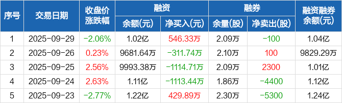 盐津铺子:融资净买入546.33万元,融资余额1.02亿元(09-29)