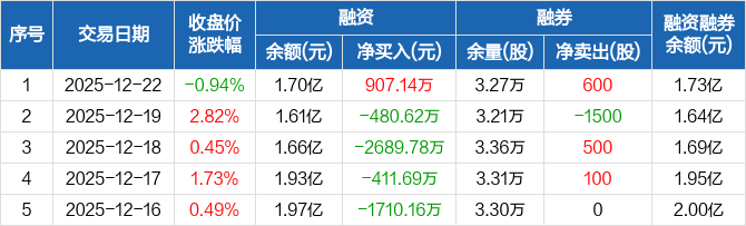 盐津铺子:融资净买入907.14万元,融资余额1.7亿元(12-22)