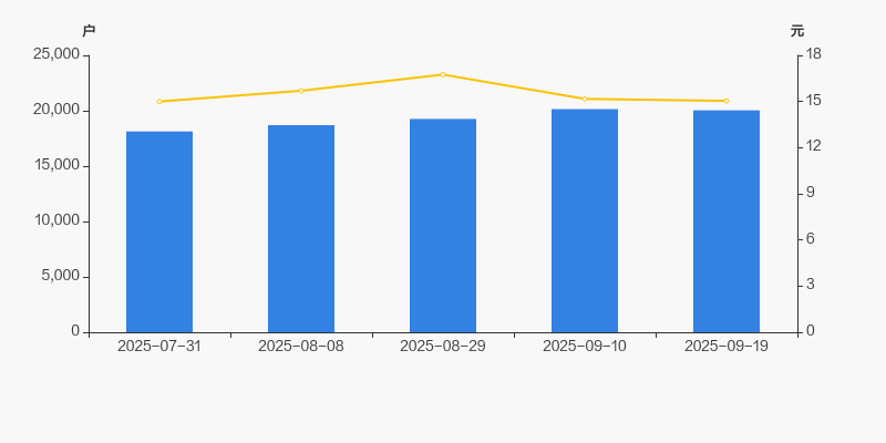 2025年7月31日至今,公司股东户数显著增长,区间涨幅为10.53%。2025年7月31日至2025年9月19日区间股价上涨0.27%。