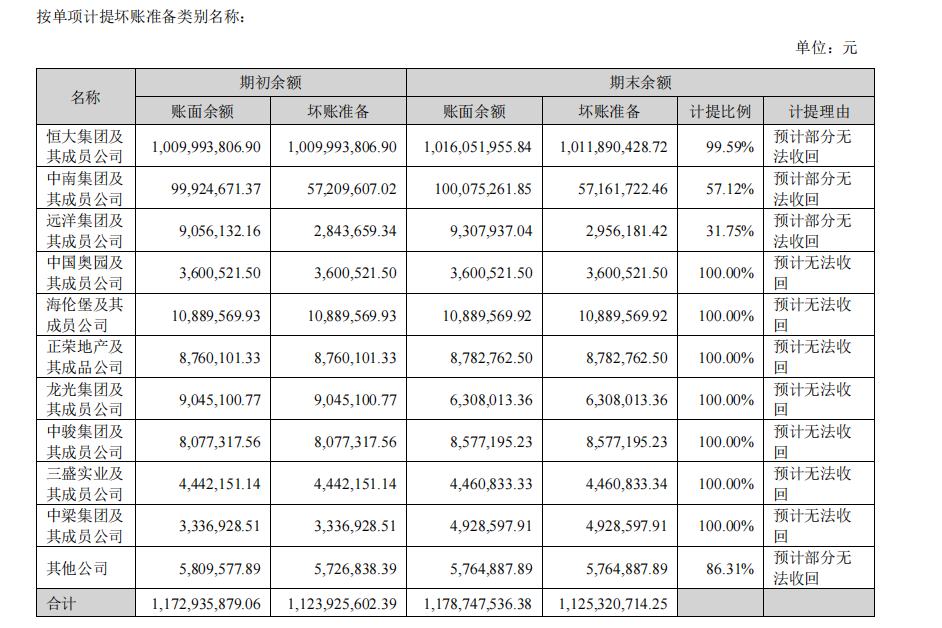2021年,公司由于计提客户房地产公司的坏账减值准备,归母净利润大幅亏损7.3亿元,而罪魁祸首就是账面余额约10亿元的恒大集团及其子公司。