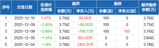 星帅尔:融资净买入99.69万元,融资余额3.76亿元(12-10)