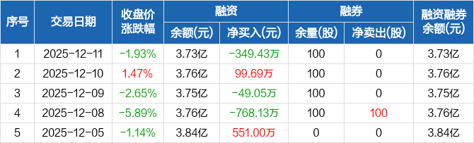 星帅尔:融资净偿还349.43万元,融资余额3.73亿元(12-11)