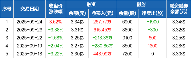 钧达股份:融资净买入267.77万元,融资余额3.34亿元(09-24)