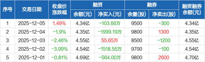 钧达股份:融资净偿还103.66万元,融资余额4.34亿元(12-05)