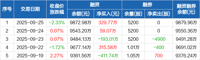 周大生:融资净买入329.77万元,融资余额9872.98万元(09-25)