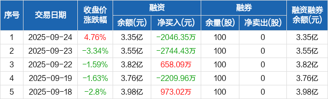 金溢科技:融资净偿还2046.35万元,融资余额3.35亿元(09-24)