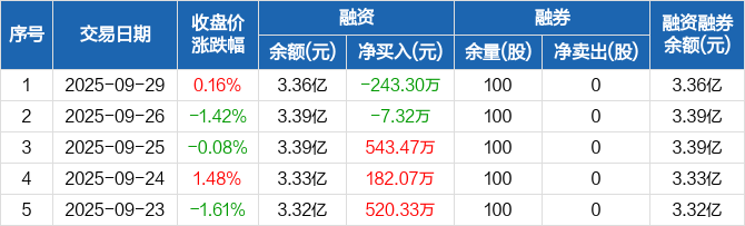 三利谱:融资净偿还243.3万元,融资余额3.36亿元(09-29)