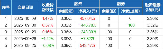 三利谱:融资净买入457.04万元,融资余额3.36亿元(10-09)