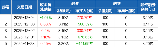 三利谱:融资净买入770.79万元,融资余额3.19亿元(12-04)