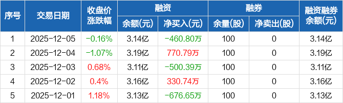 三利谱:融资净偿还460.8万元,融资余额3.14亿元(12-05)