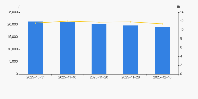 2025年10月31日至今,公司股东户数显著下降,区间跌幅为10.41%。2025年10月31日至2025年12月10日区间股价下降1.55%。