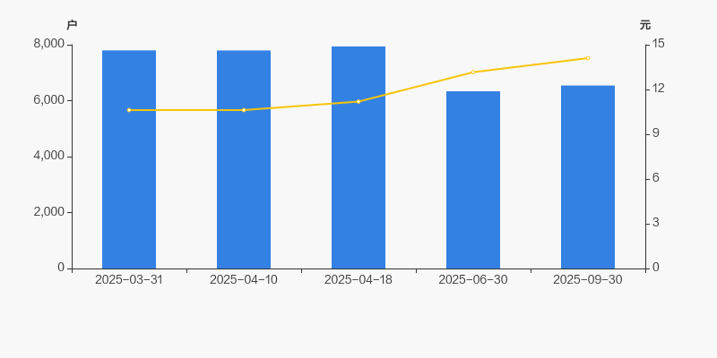 2025年3月31日至今,公司股东户数显著下降,区间跌幅为16.11%。2025年3月31日至2025年9月30日区间股价上涨32.82%。