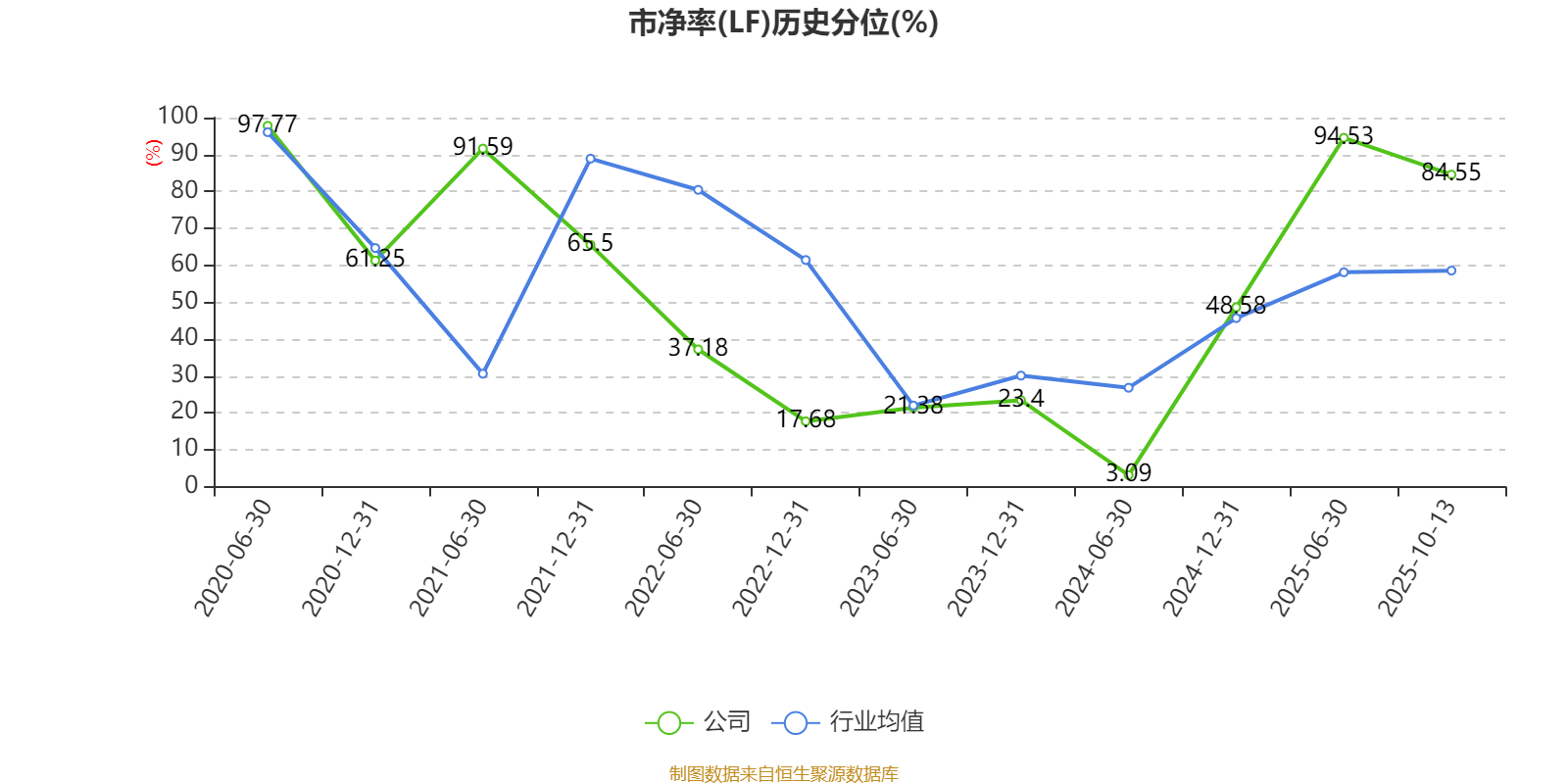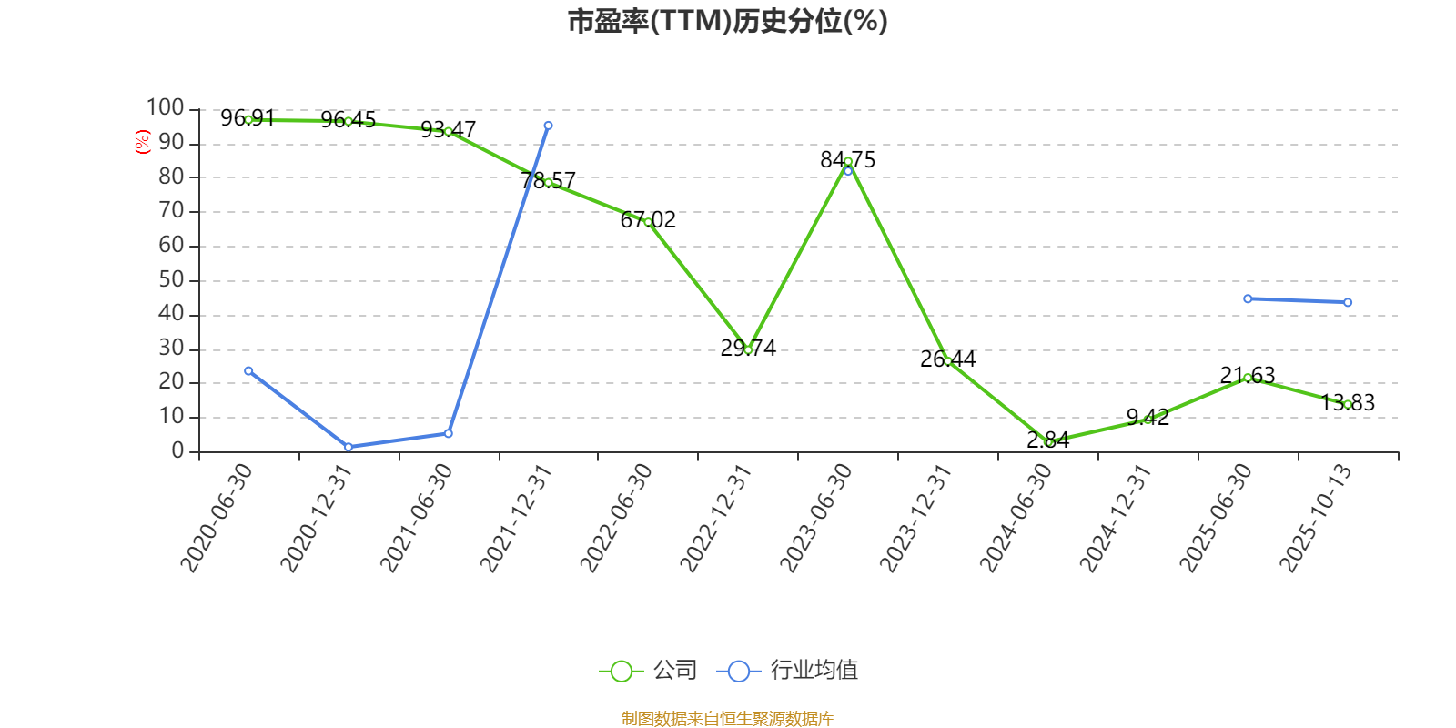 市盈率、市净率为负时,不显示当期分位数,会导致折线图中断。