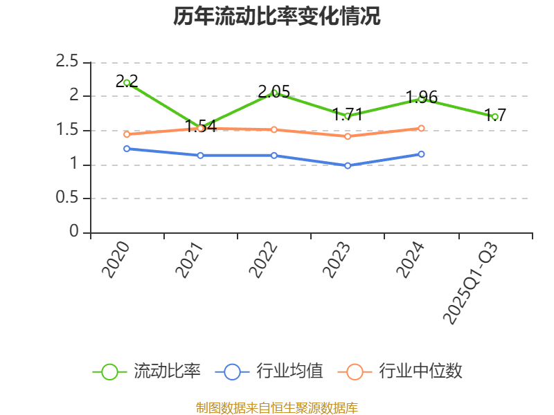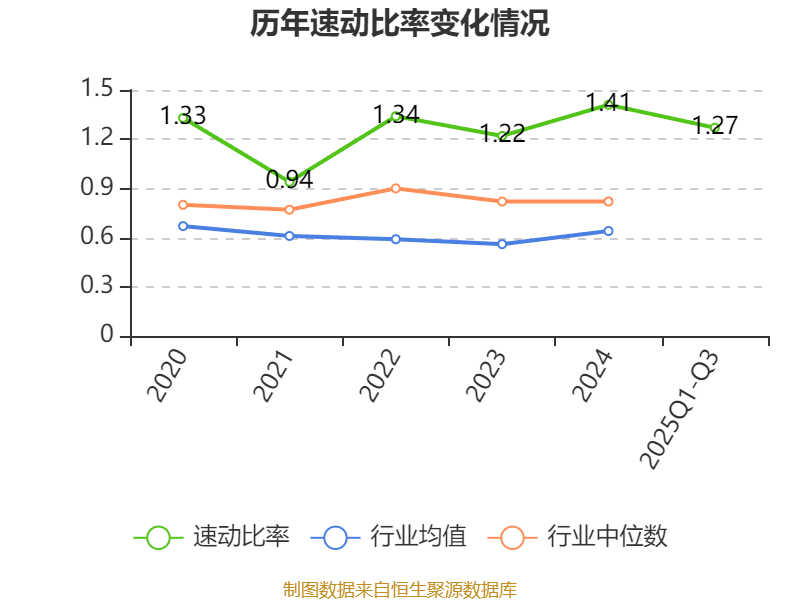 2025年前三季度,公司流动比率为1.7,速动比率为1.27。