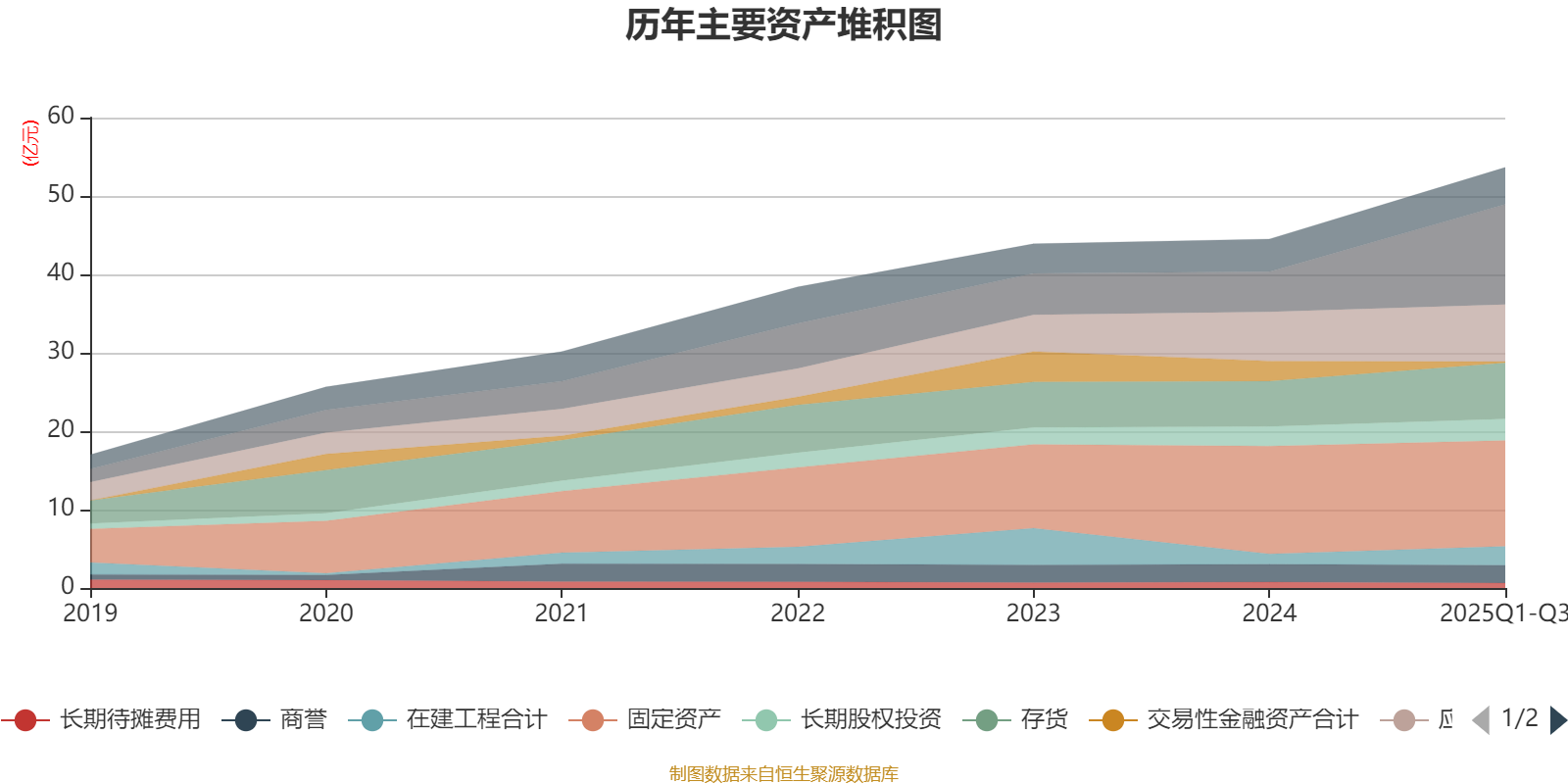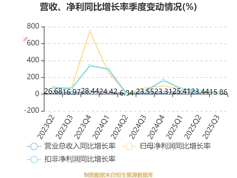 资产重大变化方面,截至2025年三季度末,公司货币资金较上年末增加148.8%,占公司总资产比重上升12.28个百分点;固定资产较上年末减少1.77%,占公司总资产比重下降5.71个百分点;交易性金融资产合计较上年末减少94.17%,占公司总资产比重下降5.51个百分点;在建工程合计较上年末增加82.11%,占公司总资产比重上升1.52个百分点。