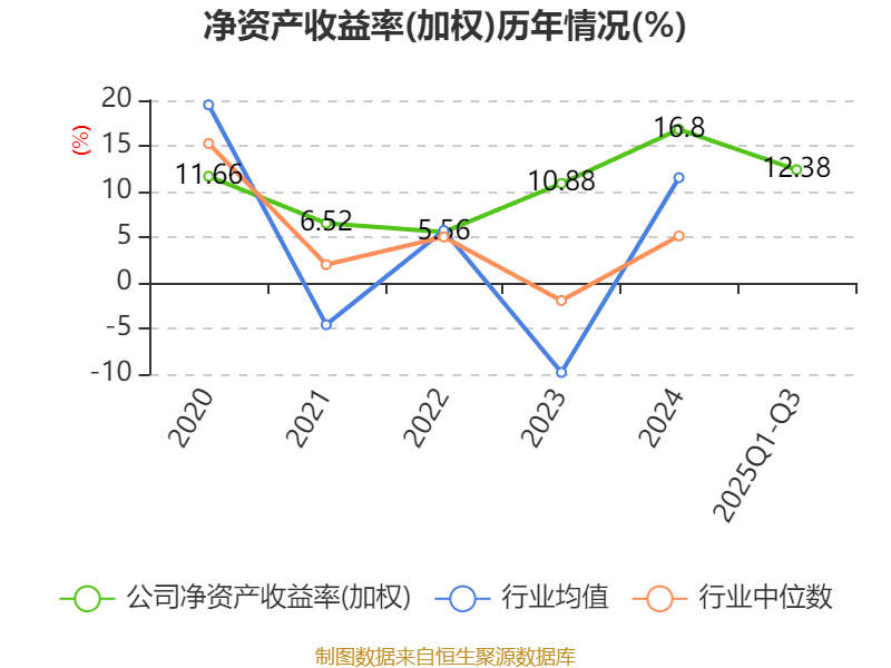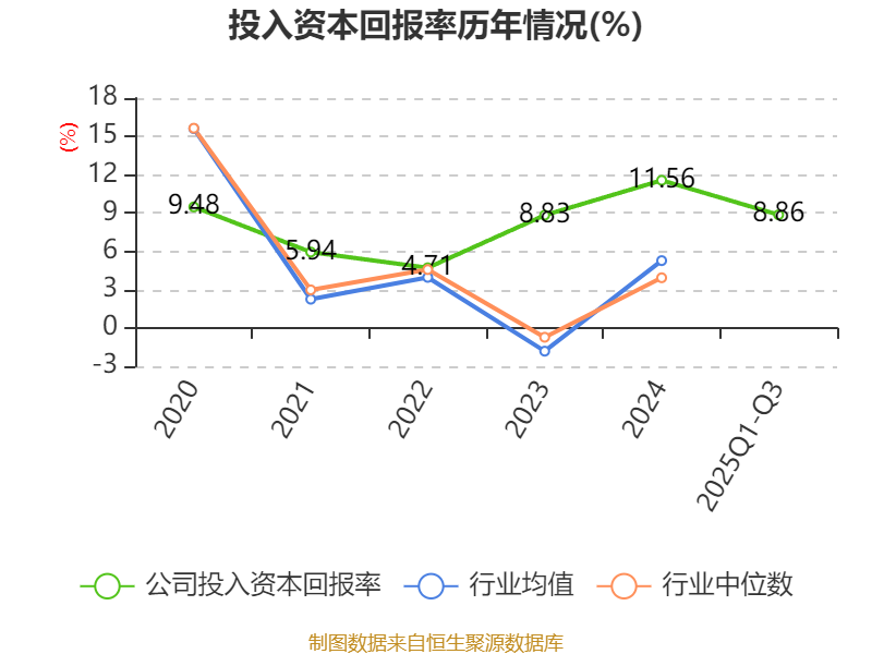 盈利能力方面, 2025年前三季度公司加权平均净资产收益率为12.38%,同比上升0.26个百分点。公司2025年前三季度投入资本回报率为8.86%,较上年同期上升0.49个百分点。