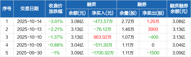 科力尔:融资净偿还473.57万元,融资余额3.08亿元(10-14)