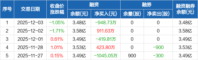意华股份:融资净偿还948.73万元,融资余额3.48亿元(12-03)