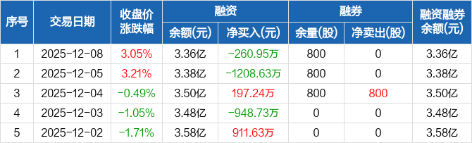 意华股份:融资净偿还260.95万元,融资余额3.36亿元(12-08)