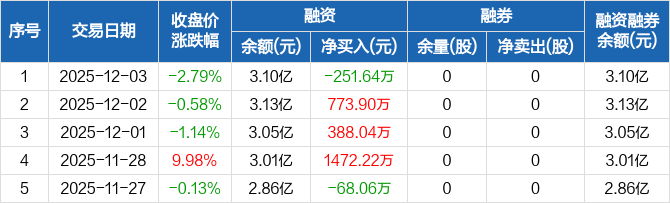 宇环数控:融资净偿还251.64万元,融资余额3.1亿元(12-03)