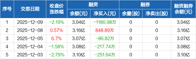 宇环数控:融资净偿还1180.98万元,融资余额3.04亿元(12-09)