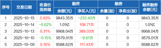 集泰股份:融资净偿还233.4万元,融资余额9843.35万元(10-15)