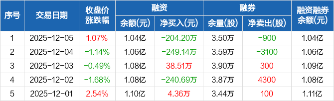 佛燃能源:融资净偿还204.2万元,融资余额1.04亿元(12-05)