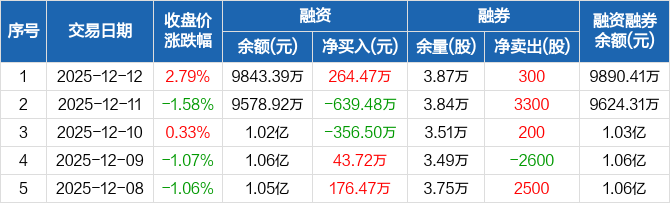 佛燃能源:融资净买入264.47万元,融资余额9843.39万元(12-12)