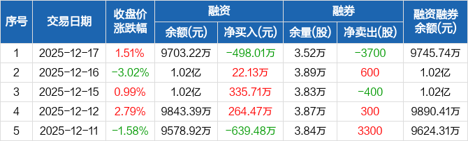 佛燃能源:融资净偿还498.01万元,融资余额9703.22万元(12-17)