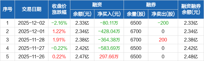 中欣氟材:连续4日融资净偿还累计1456.23万元(12-02)