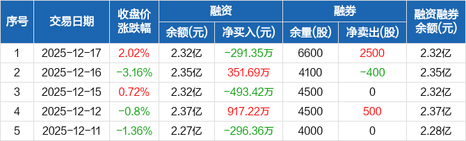 中欣氟材:融资净偿还291.35万元,融资余额2.32亿元(12-17)