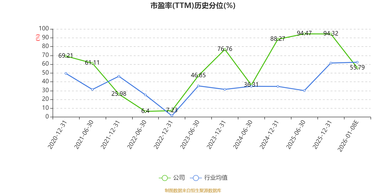 以本次披露业绩预告均值计算,公司近年市盈率(TTM)图如下所示: