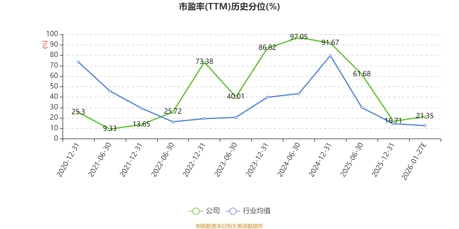 市盈率、市净率为负时,不显示当期分位数,会导致折线图中断。