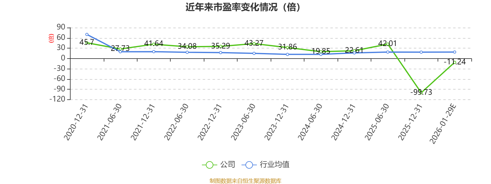 中证智能财讯宏川智慧(002930)1月29日晚间披露2025年度业绩预告,预计2025年归母净利润亏损4.43亿元至4.75亿元,上年同期盈利1.58亿元;扣非净利润亏损4.44亿元至4.75亿元,上年同期盈利1.25亿元;基本每股收益-0.97元/股至-1.04元/股。以最新收盘价计算,市净率(LF)约2.21倍,市销率(TTM)约4.16倍。