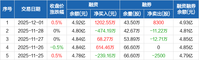 郑州银行:融资净买入1202.55万元,融资余额4.92亿元(12-01)