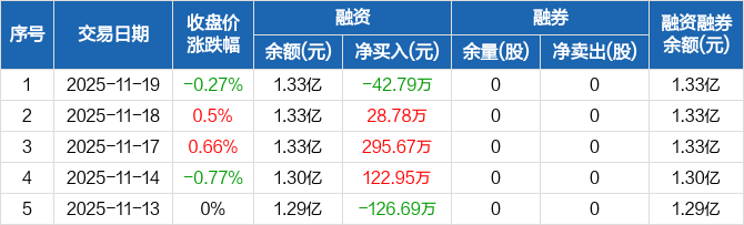 兴瑞科技:融资净偿还42.79万元,融资余额1.33亿元(11-19)