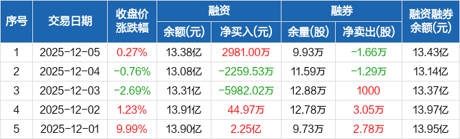 鹏鼎控股:融资净买入2981万元,融资余额13.38亿元(12-05)
