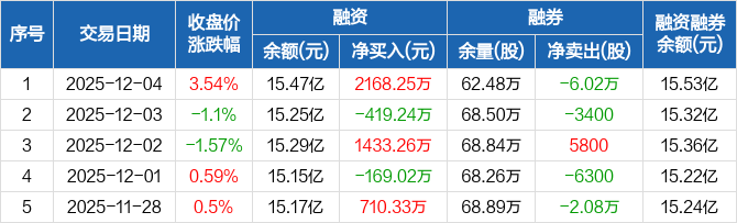 长城证券:融资净买入2168.25万元,融资余额15.47亿元(12-04)