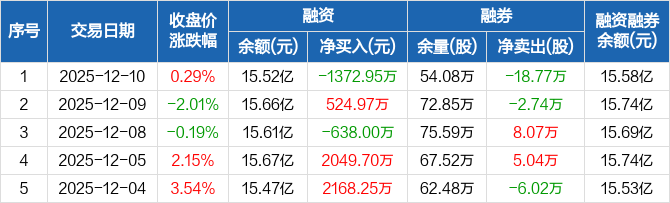 长城证券:融资净偿还1372.95万元,融资余额15.52亿元(12-10)