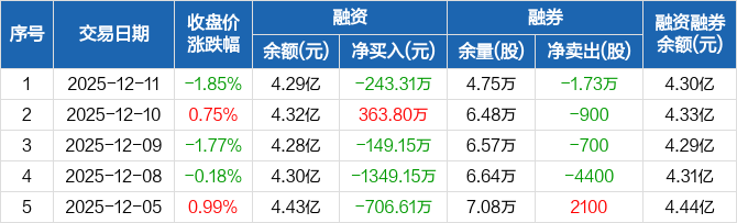 新疆交建:融资净偿还243.31万元,融资余额4.29亿元(12-11)