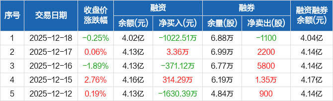 新疆交建:融资净偿还1022.51万元,融资余额4.02亿元(12-18)