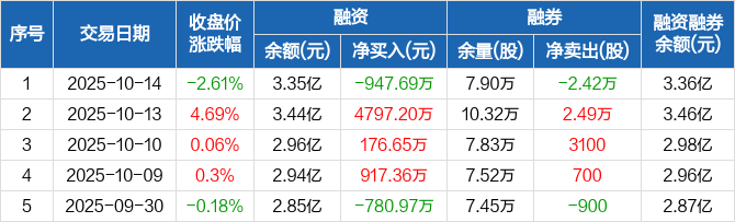 华林证券:融资净偿还947.69万元,融资余额3.35亿元(10-14)