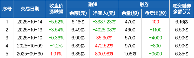 恒铭达:融资净偿还3387.23万元,融资余额6.16亿元(10-14)