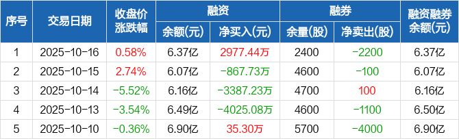 恒铭达:融资净买入2977.44万元,融资余额6.37亿元(10-16)
