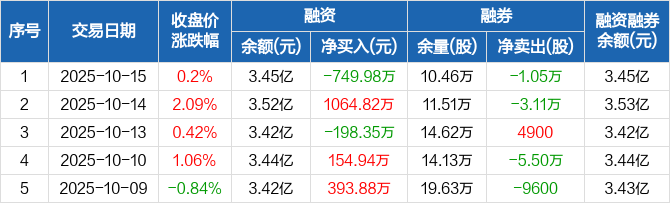 青岛银行:融资净偿还749.98万元,融资余额3.45亿元(10-15)
