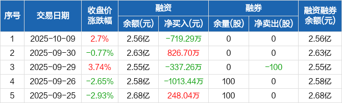 科瑞技术:融资净偿还719.29万元,融资余额2.56亿元(10-09)