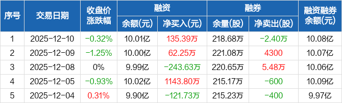 青农商行:融资净买入135.39万元,融资余额10.01亿元(12-10)